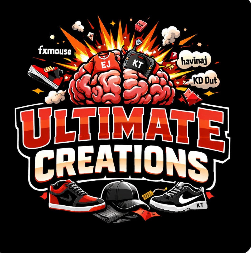 Ready to level up your wardrobe? Our collection is bursting with one-of-a-kind clothes, epic shoes, and customizable items designed just for you. From bold graphic tees to statement sneakers, every piece at Ultimate Creations is made to help you shine. Find your next favorite outfit!